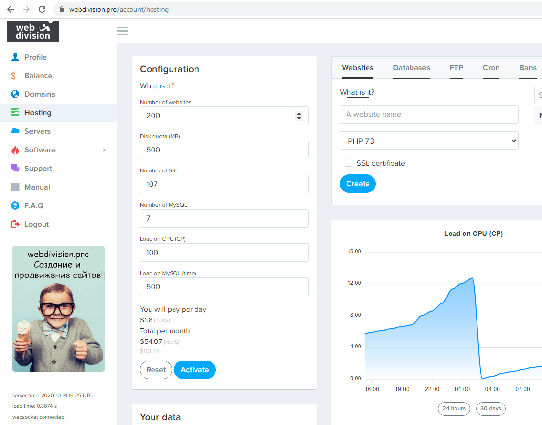 31 october 2020, 22:09 WEBDIVISION.PRO Hosting 1 6 0 0