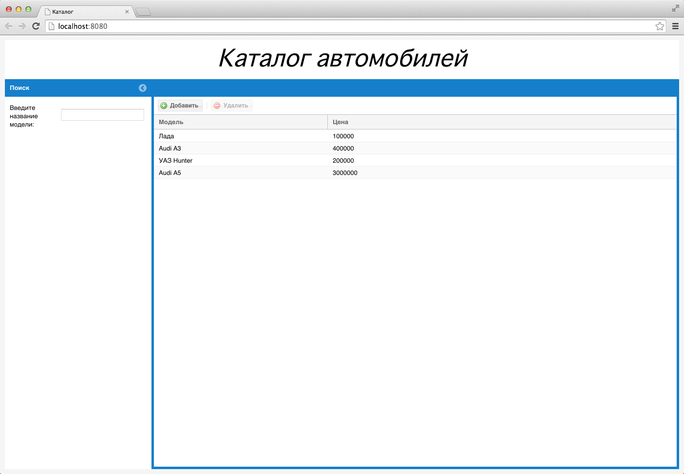 </code>Создайте БД с названием CarCatalog и кодировкой utf_general_ci или измените название в контексте my-context.xml на своё. Также измените p:username и p:password, если не совпадает.