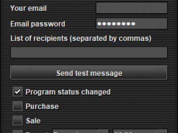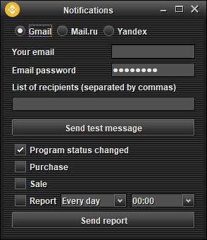 Button Icon Notifications - open a window for setting up notifications to your mail or mail from the program.