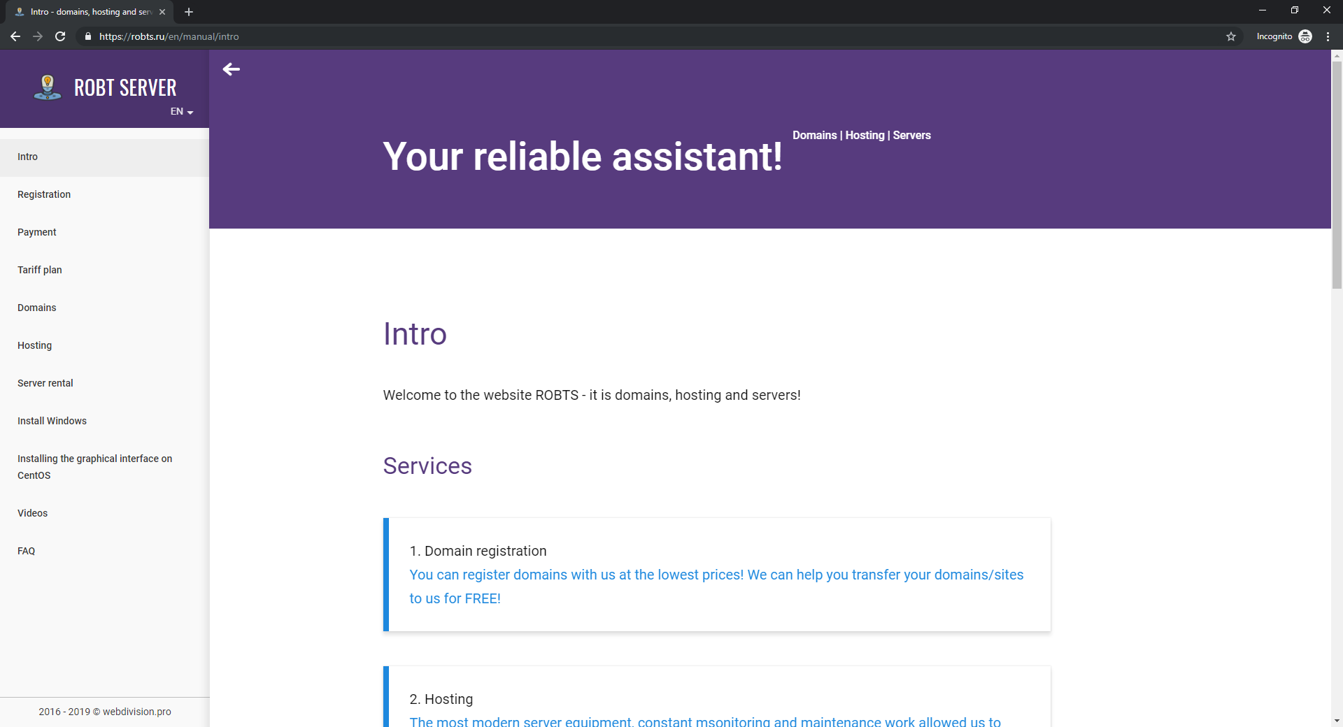 ROBTS is one of the largest hosting providers in Russia! Largest domain registrar! Rent servers for every taste!