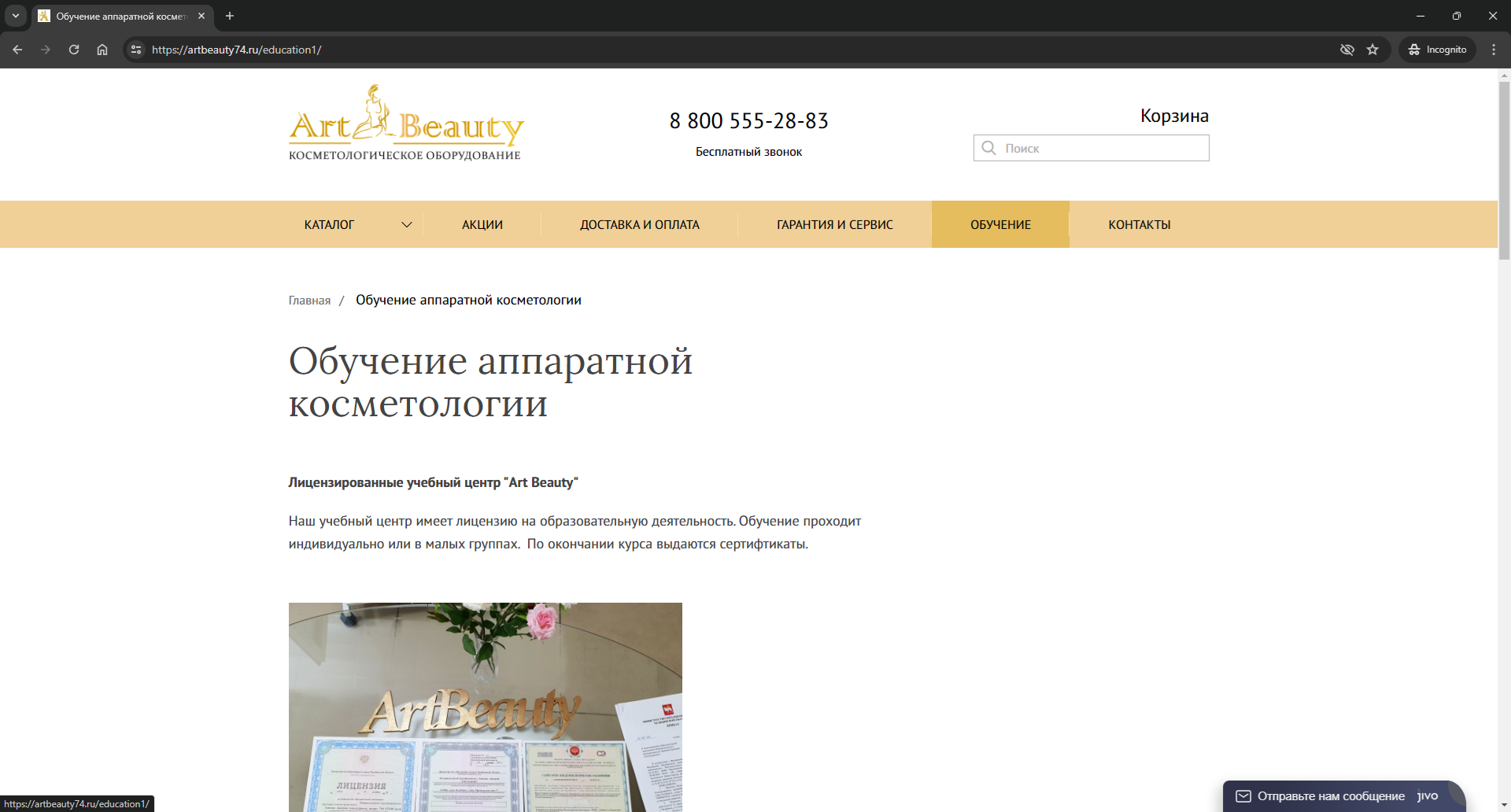 The Art Beauty company owns not only an online store of professional cosmetics, but also a training center that has a license for educational activities. We offer individual training or small group training. Upon completion of the course, students are issued certificates. The document gives the right to work as a cosmetologist in any clinic or salon and promote your services on social networks.